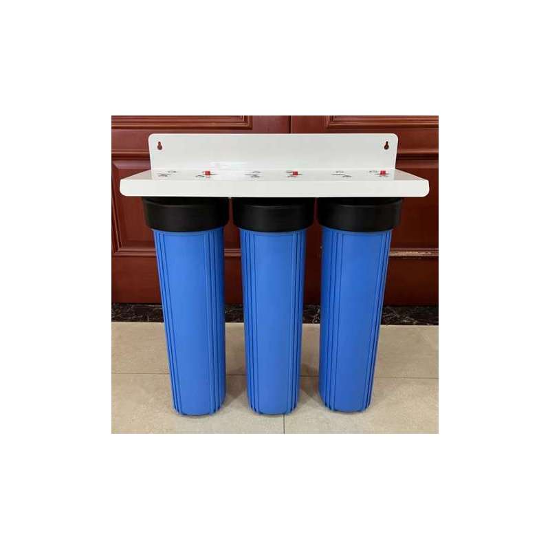 Système Triplex Big Blue 20" prêt à poser, livré avec 3 cartouches (PP, GAC, CTO) — grande capacité, débit élevé et maintenance simple.